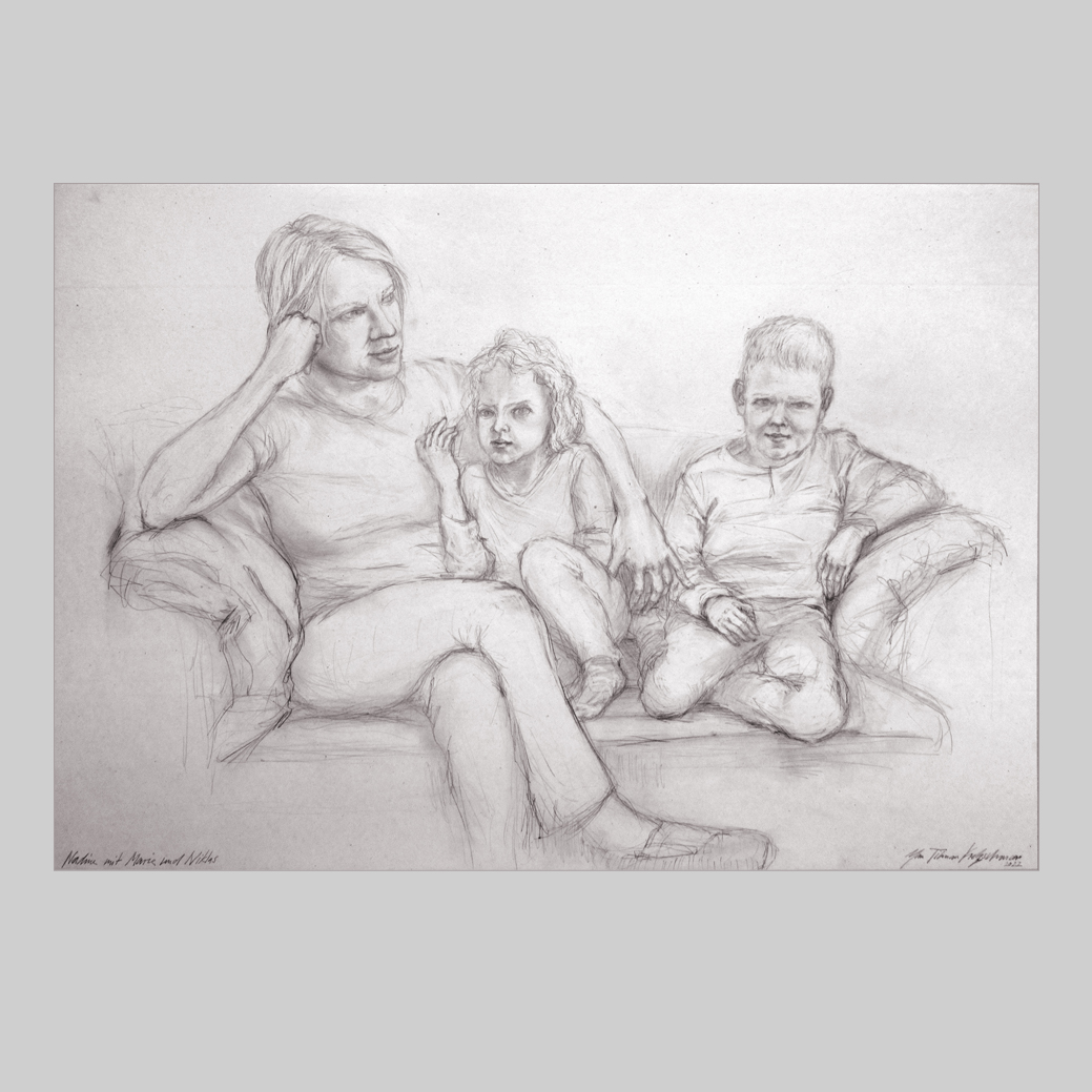 Porträts: Ölmalerei auf Leinwand, Format: 80 x 60 cm; Porträtzeichnung: Bleistift auf Papier, Format: 60 x 80 cm